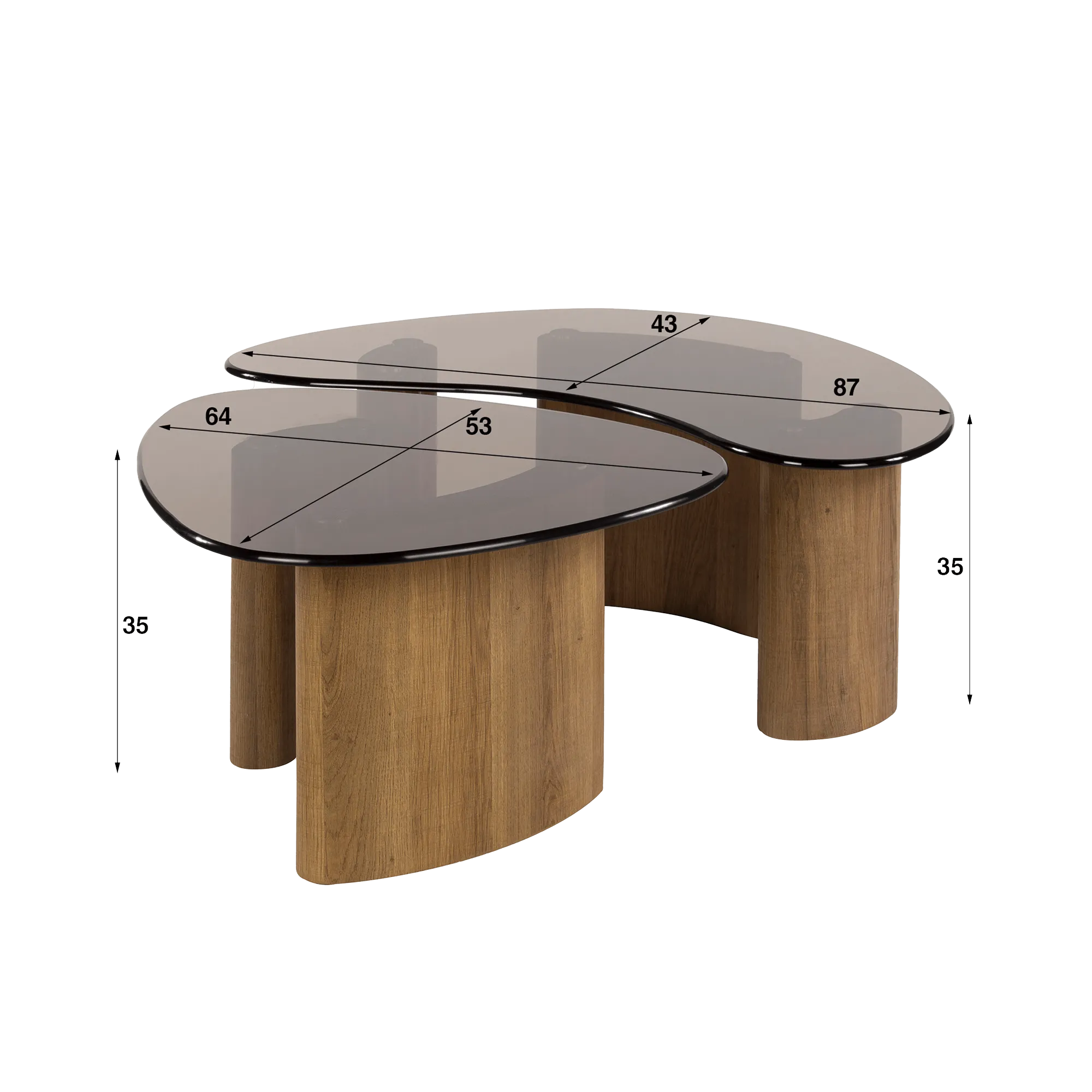 Table de salon forme organique avec plateau en verre (lot de 2) - Tinto