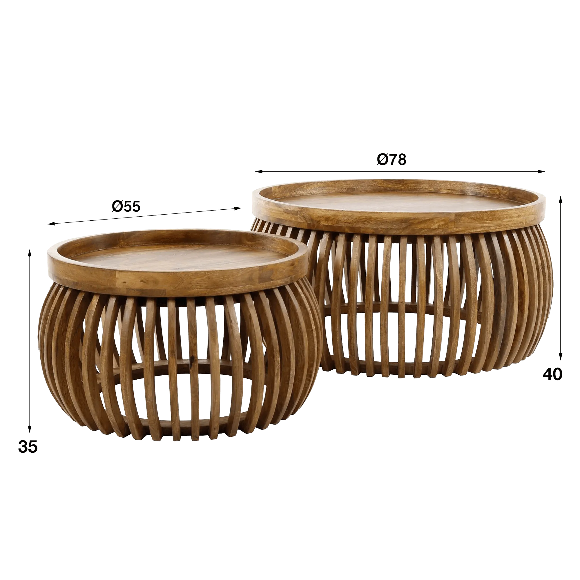 Lot de 2 tables basses rondes en bois de manguier massif - Orbit 78/55 x 78/55 x 40/35 cm