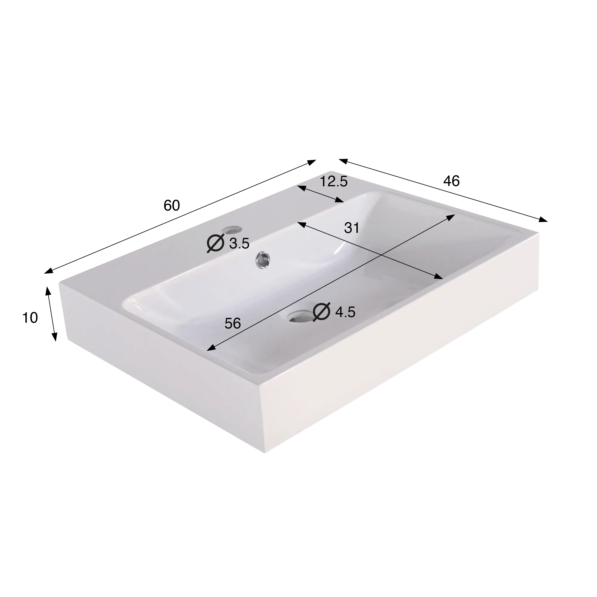 Len format rectangulaire généreux de cette vasque salle de bain en céramique, blanc mat, pensé pour un usage confortable, offre un bassin bien proportionné qui facilite les gestes du matin comme ceux du soir. Les dimensions intérieures permettent une utilisation fluide, tandis que la hauteur contenue de la vasque assure une intégration naturelle sur un meuble sous-vasque, sans alourdir la composition. L’emplacement du perçage pour la robinetterie et l’évacuation a été étudié pour garantir une ergonomie optimale et une installation simple, quelle que soit la configuration choisie.
