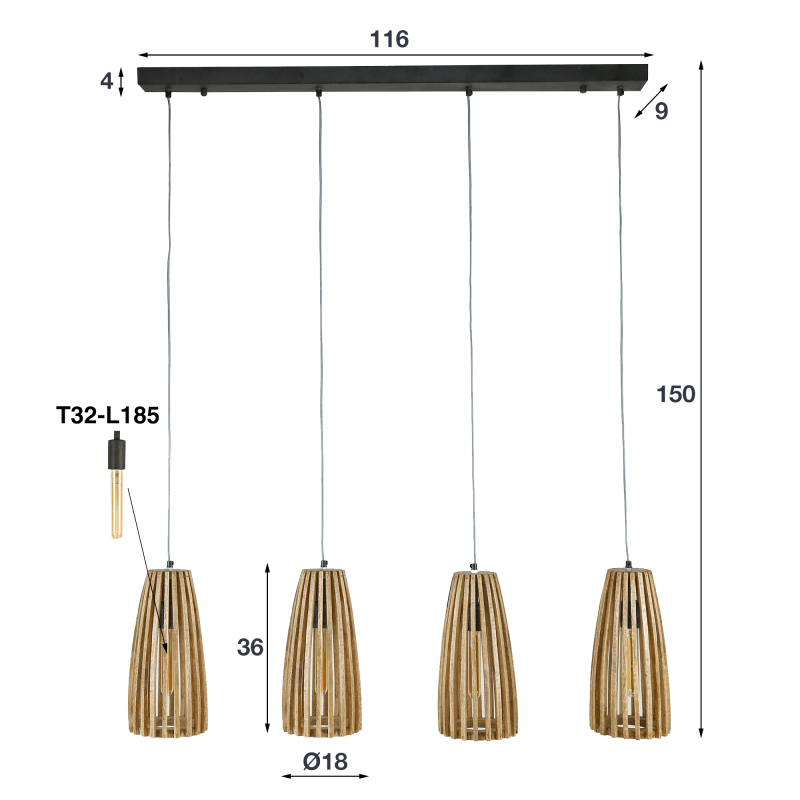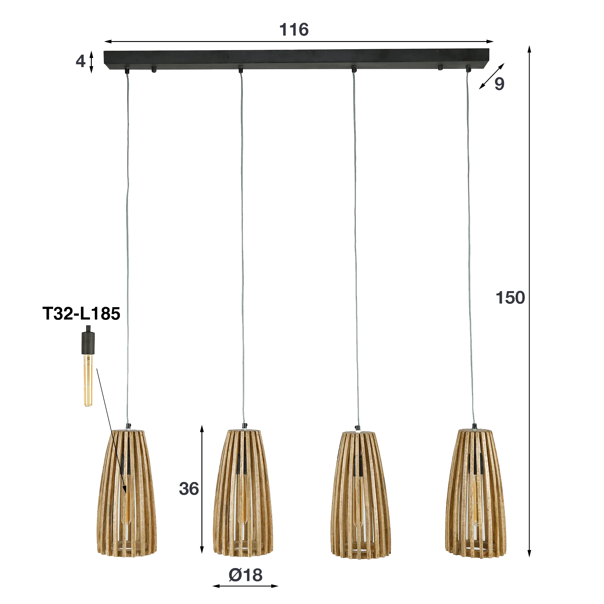 Avec le luminaire suspendu en bois de manguier massif Natura, nos designers ont souhaité célébrer la beauté simple du bois massif de manguier et la chaleur des intérieurs naturels. Chaque abat-jour est façonné à partir de fines lamelles de bois, découpées puis assemblées délicatement pour laisser circuler la lumière et créer un jeu d’ombres doux et apaisant. Suspendues à une base discrète de 116 cm de long, les quatre formes s’équilibrent avec une légèreté visuelle qui s’intègre facilement au-dessus d’une table à manger ou dans un espace de vie généreux.