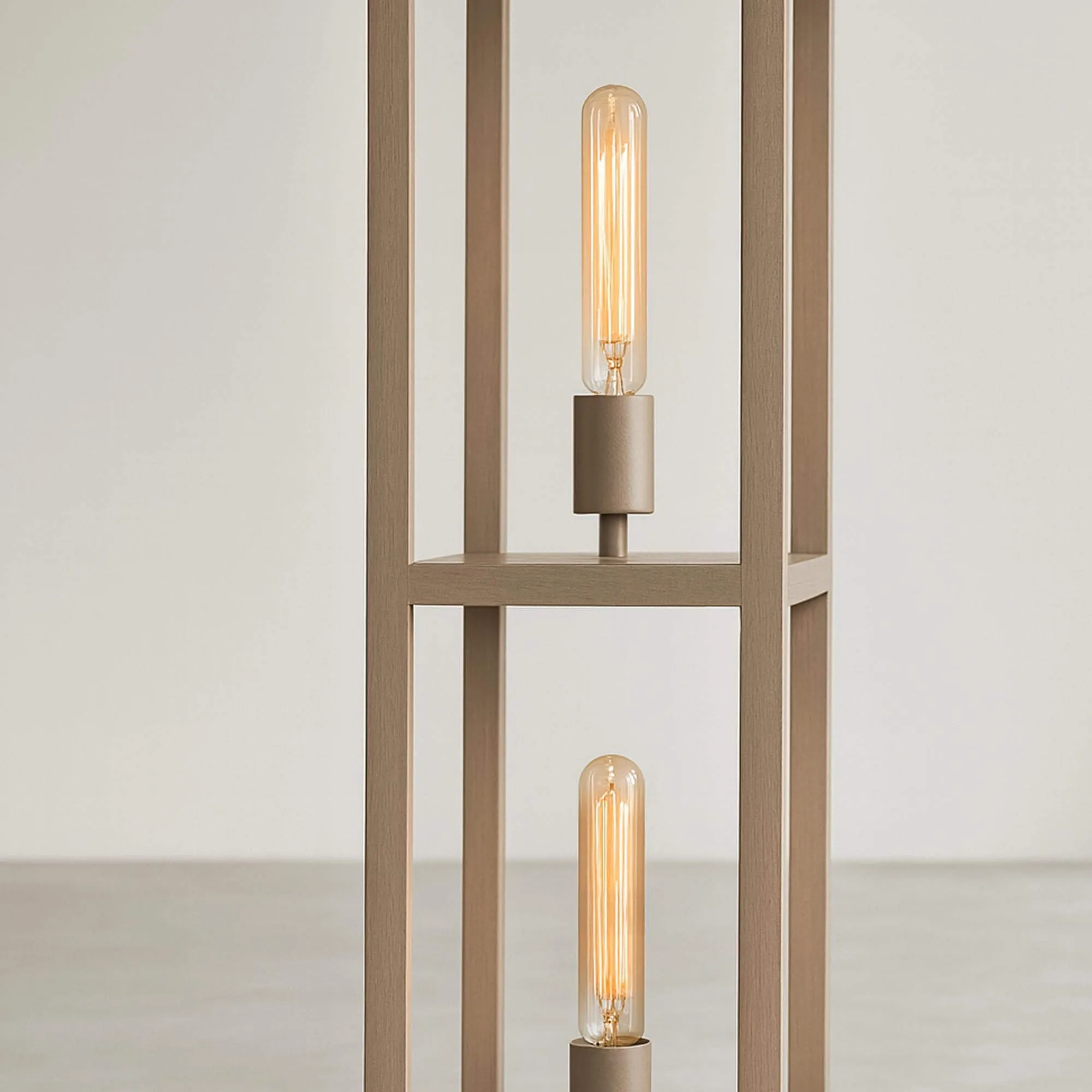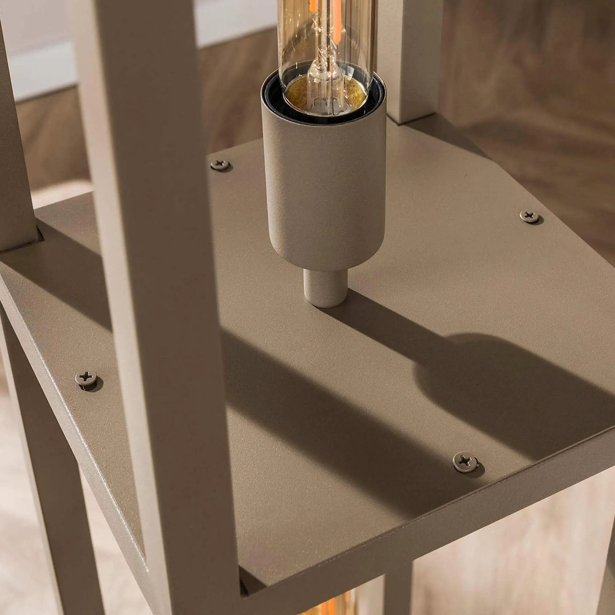 La verticalité assumée du modèle de lampe sur pied de salon en métal avec éclairage LED style industriel Strukt a guidé tout notre travail de conception. Nous souhaitions une lampe qui structure une pièce sans l’alourdir, en jouant davantage sur la lumière que sur la matière. Les quatre plateaux espacés de 38 cm laissent circuler l’air et les ombres, offrant un jeu lumineux subtil dès que la lampe est allumée. Ce rythme régulier apporte une dimension presque architecturale, fidèle à l’esprit de la collection.