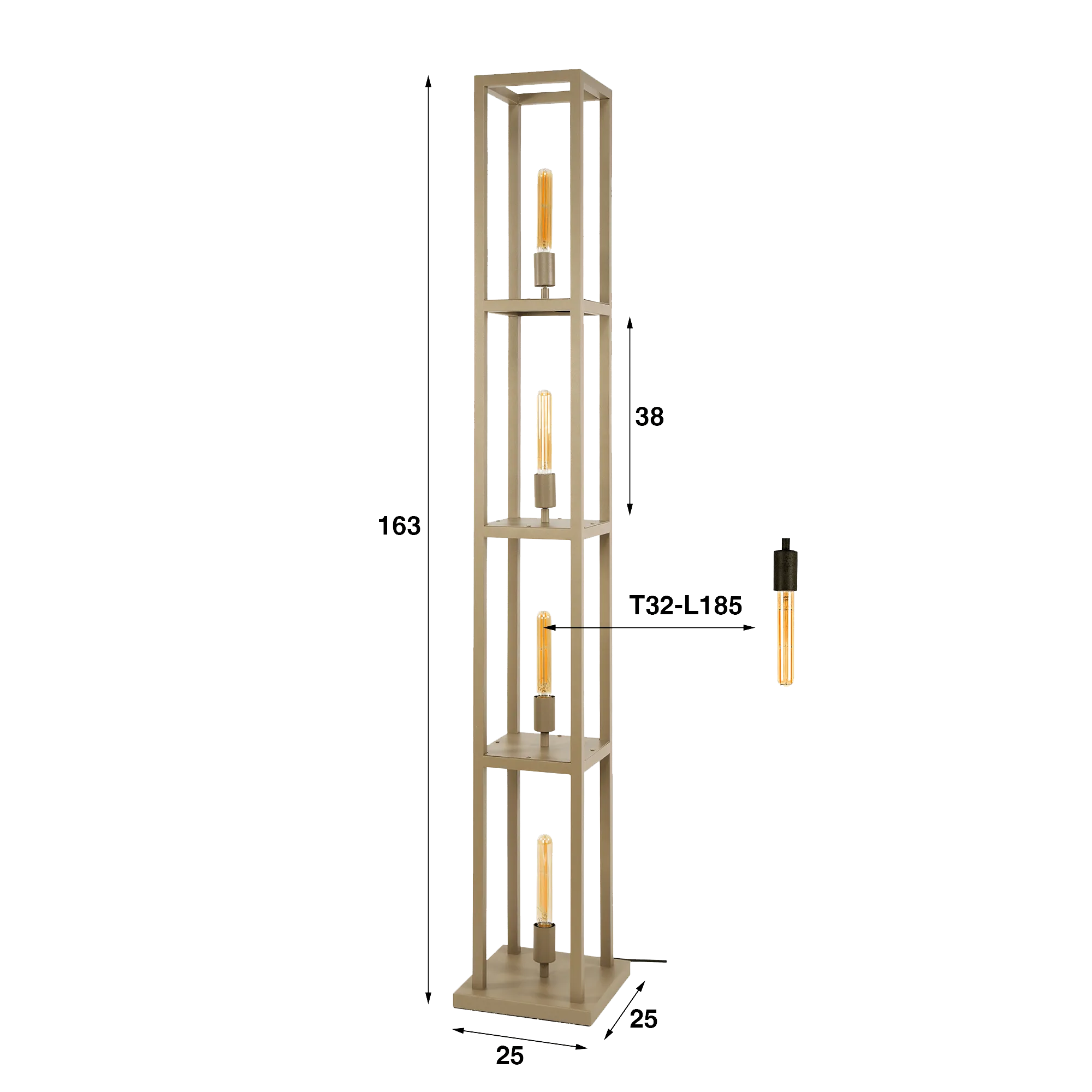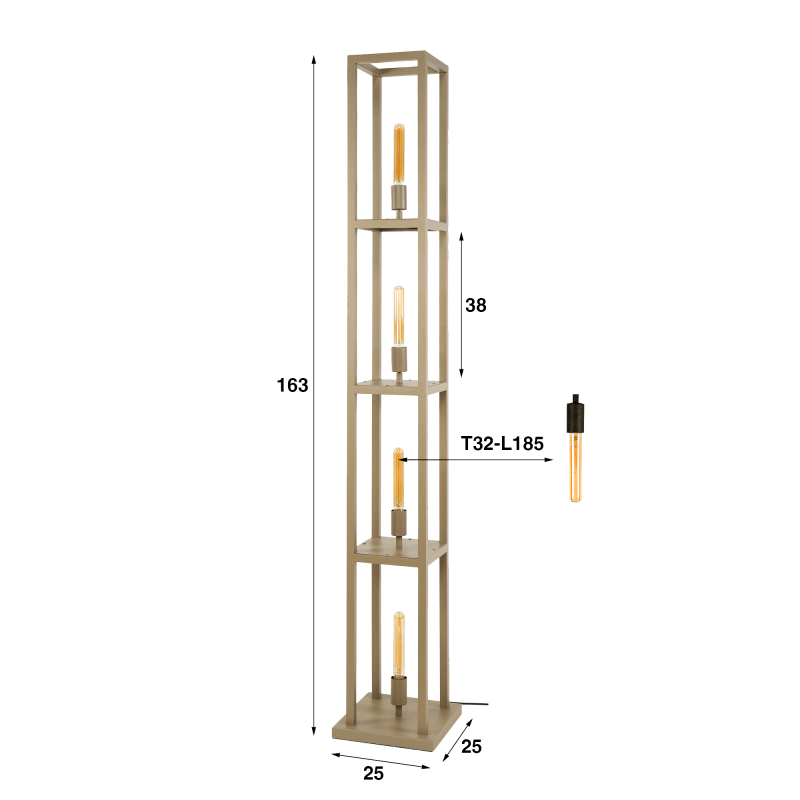 Avec la lampe sur pied de salon en métal avec éclairage LED style industriel Strukt, nos designers ont recherché une expression lumineuse d’une grande sobriété, pensée pour accompagner les intérieurs contemporains avec une présence discrète mais profondément graphique. Sa structure verticale, haute de 163 cm, se compose de quatre modules ouverts qui rythment l’espace avec une régularité apaisante. Chaque niveau accueille une ampoule T32-L185 (non incluse), soigneusement positionnée pour créer une ligne continue de lumière douce et chaleureuse.