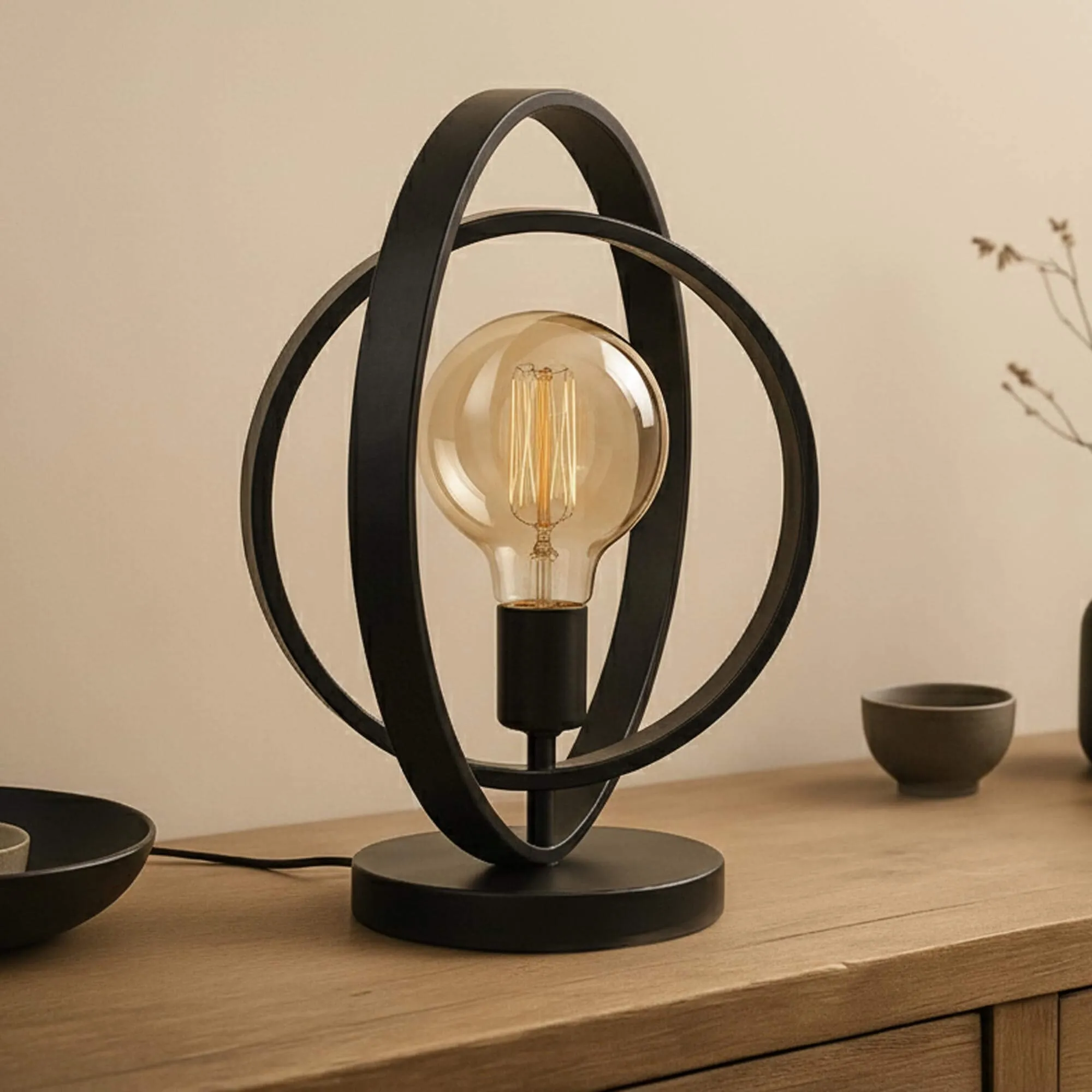 Lorsque nous avons conçu la lampe de bureau industrielle en métal Altis, nous souhaitions créer un objet lumineux qui allie caractère industriel et douceur visuelle. Les deux anneaux métalliques qui encerclent l’ampoule forment une silhouette travaillée, presque aérienne, où la lumière semble flotter au centre. Cette structure circulaire de 40 cm de diamètre, complétée par un anneau intérieur de 30 cm, offre un jeu d’ombres délicat que nous avons peaufiné jusqu’à obtenir l’équilibre recherché. La lampe atteint 43 cm de hauteur, une échelle idéale pour habiller une enfilade, une table d’appoint ou un coin lecture.