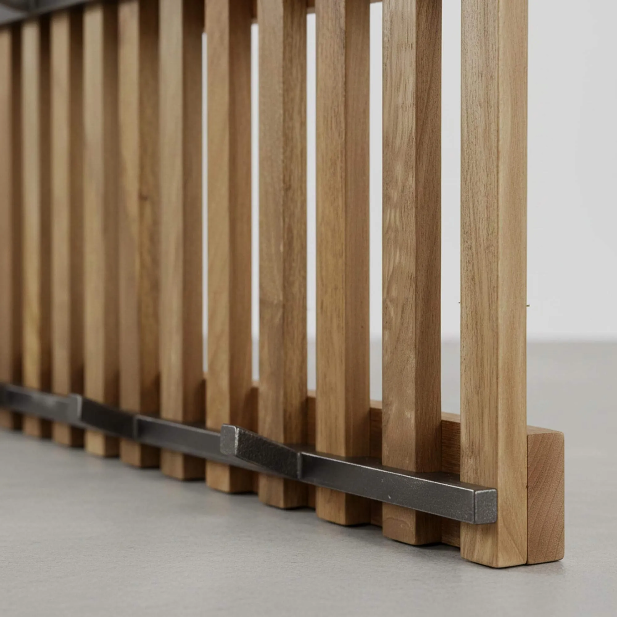 Pour une harmonie complète, le porte manteaux mural en bois Tweak trouve naturellement sa place aux côtés de nos consoles et bancs en bois massif de manguier, avec lesquels il partage la même exigence de matière et de design.