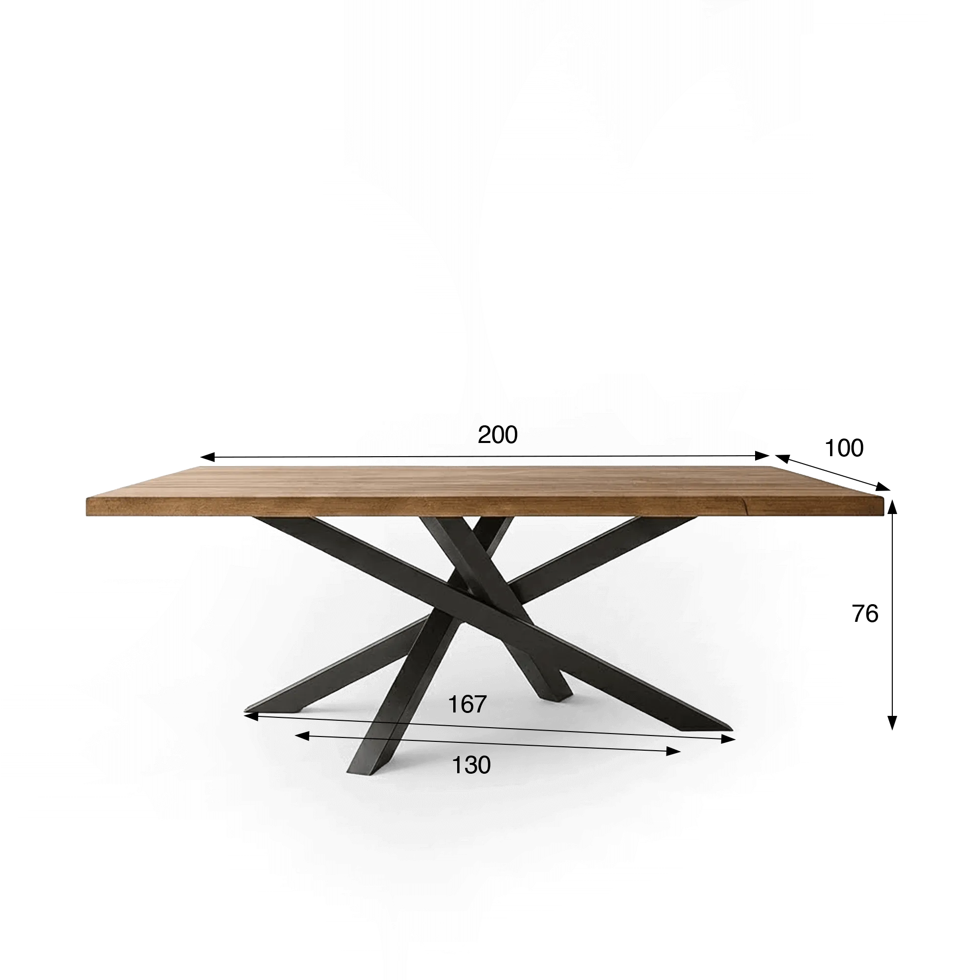 Notre table de salle à manger en bois massif à pied mikado en métal existe en plusieurs longueur de plateau (de 180 cm à 220 cm et de 90cm à 100 cm de large sur 80cm de hauteur), offrant amplement d'espace pour accueillir vos repas, vos réunions familiales ou vos soirées entre amis. L'épaisseur du plateau est de 4cm.