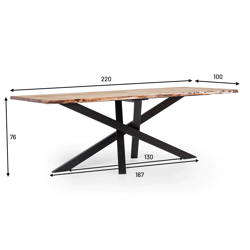 Avec son plateau disponible en deux dimensions (180 ou 220 cm de long et 90 ou 100 cm de large), cette table de salle à manger en bois massif à pied mikado en métal et bords naturels est idéale pour accueillir jusqu’à huit convives dans sa plus grande configuration avec un confort optimal. Que ce soit pour un repas convivial en famille ou une soirée entre amis, elle s'intègre parfaitement dans une salle à manger moderne ou un intérieur plus classique, tout en apportant une personnalité unique à votre espace.