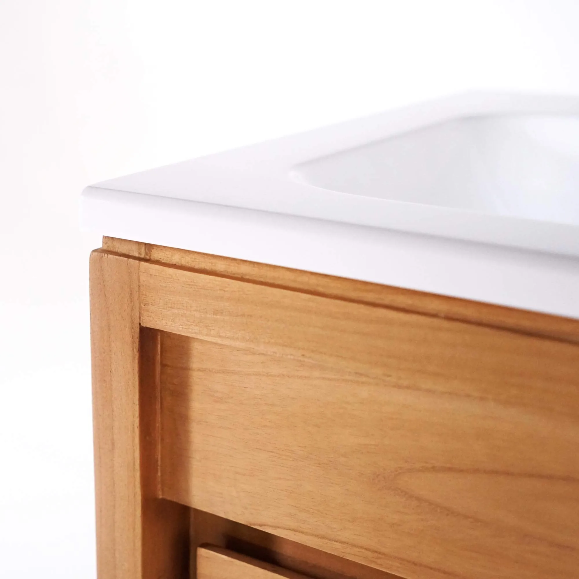 Pensé comme une pièce centrale de la salle de bain, le meuble de salle de bain double vasque en bois massif, blanc mat, Ashwini incarne notre vision d’un mobilier à la fois apaisant, fonctionnel et durable. Dès les premières esquisses, nos designers ont cherché l’équilibre juste entre lignes sobres et présence affirmée, afin de créer un meuble capable de structurer l’espace et le sublimer. Le résultat est une silhouette inspirée de l’esprit Japandi, où la douceur du bois dialogue naturellement avec la pureté du blanc mat.