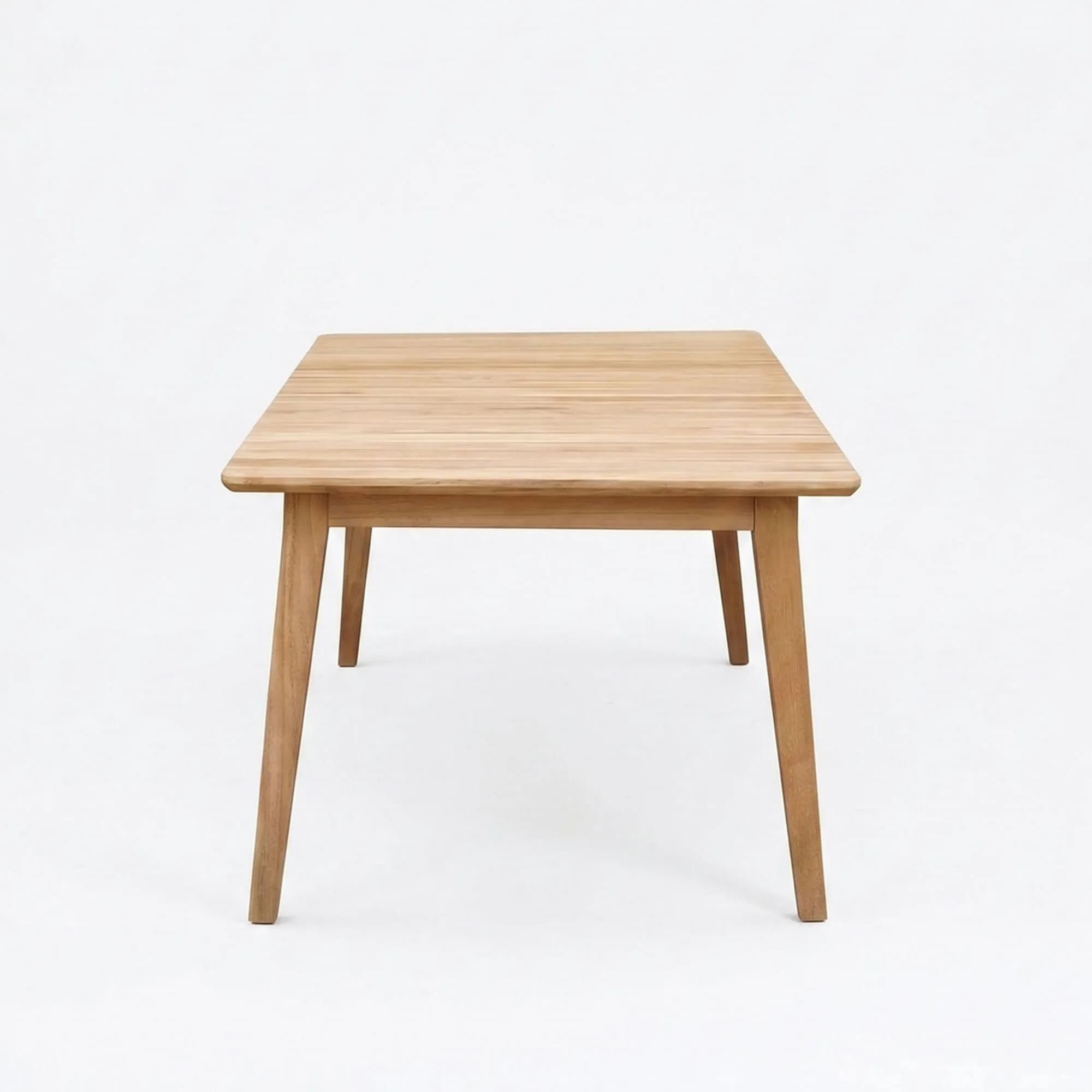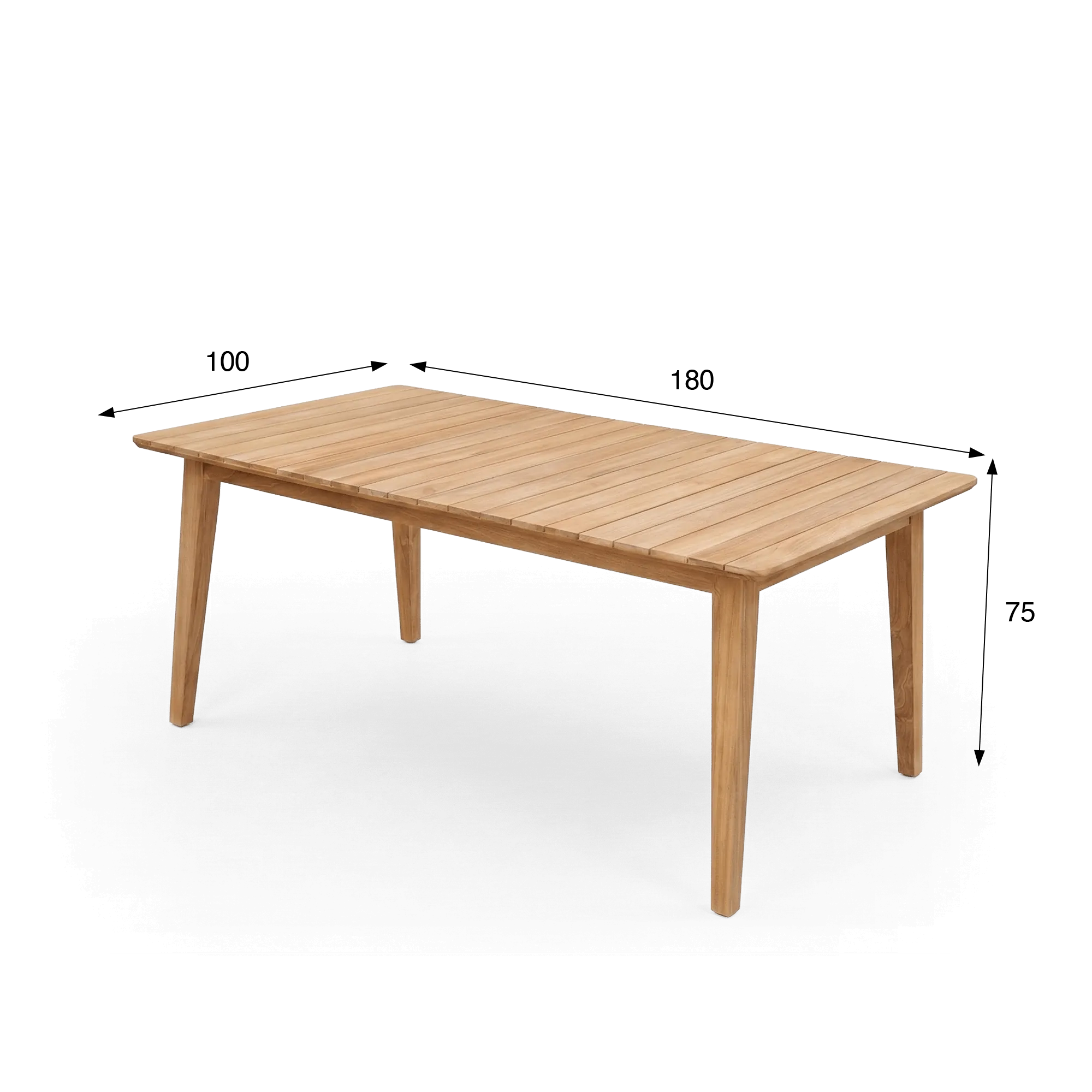 Les proportions de notre table de jardin pour extérieur en bois de teck Reito ont été pensées pour accueillir confortablement plusieurs convives - jusqu'à 6 personnes - tout en conservant une silhouette aérienne. L’équilibre entre la finesse du plateau et la stabilité des pieds en bois massif crée une sensation de légèreté, idéale pour une terrasse contemporaine, un jardin structuré ou un espace plus naturel. Sa longueur généreuse permet d’organiser des repas conviviaux sans compromettre la circulation autour de la table.