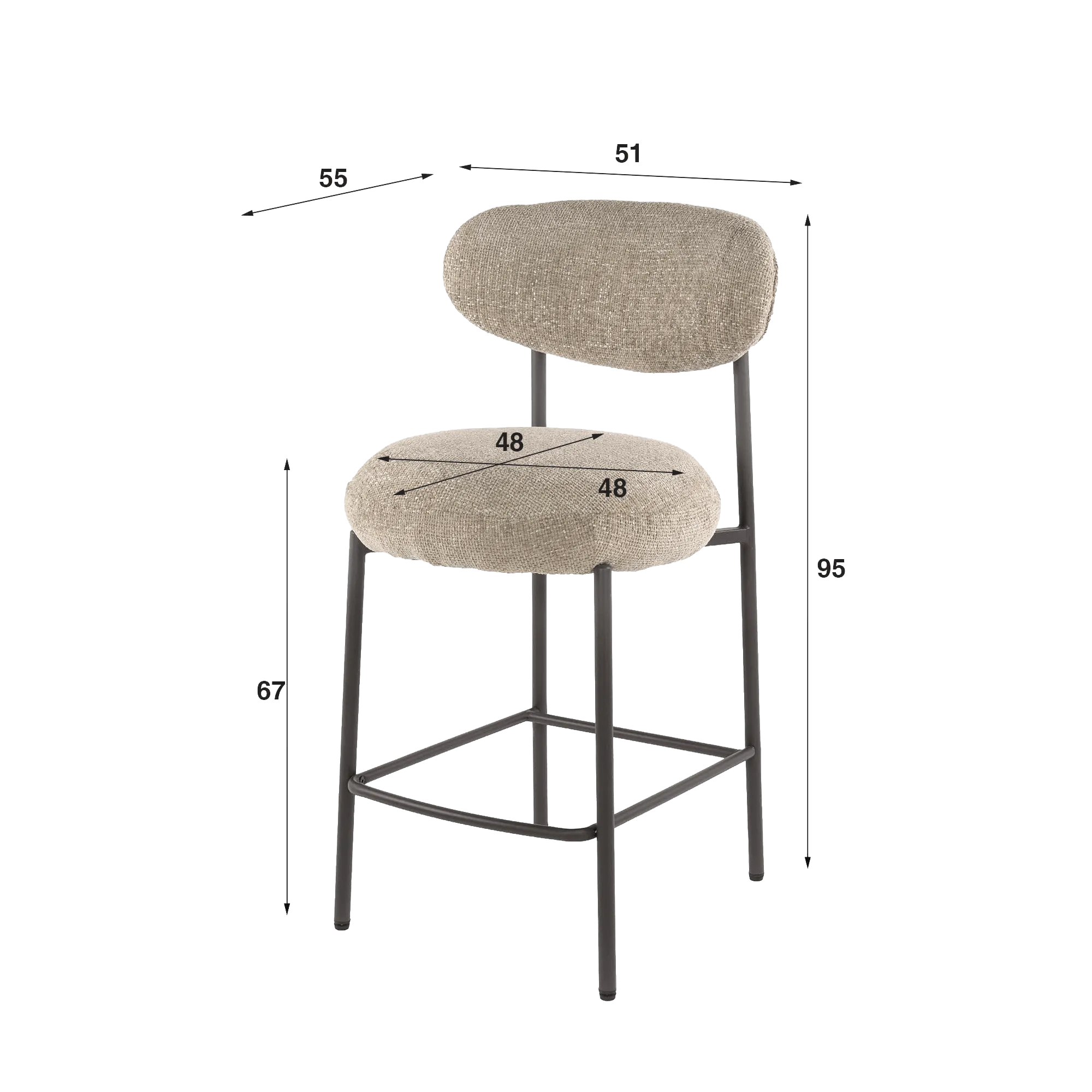 Le piètement en métal de cette chaise haute de cuisine pour ilôt central, fin et structuré, apporte un contraste maîtrisé avec la douceur de l’assise. Nous avons travaillé ses proportions pour garantir une excellente stabilité, tout en conservant une impression de légèreté. Le repose-pieds intégré, positionné à une hauteur confortable, participe à l’ergonomie globale et invite à une posture naturelle. Avec une hauteur d’assise d’environ 67 cm, la chaise haute de cuisine pour ilôt central Kai s’adapte idéalement aux îlots et plans de travail standards, tandis que sa largeur d’assise de 48 cm assure une assise enveloppante sans encombrer l’espace.