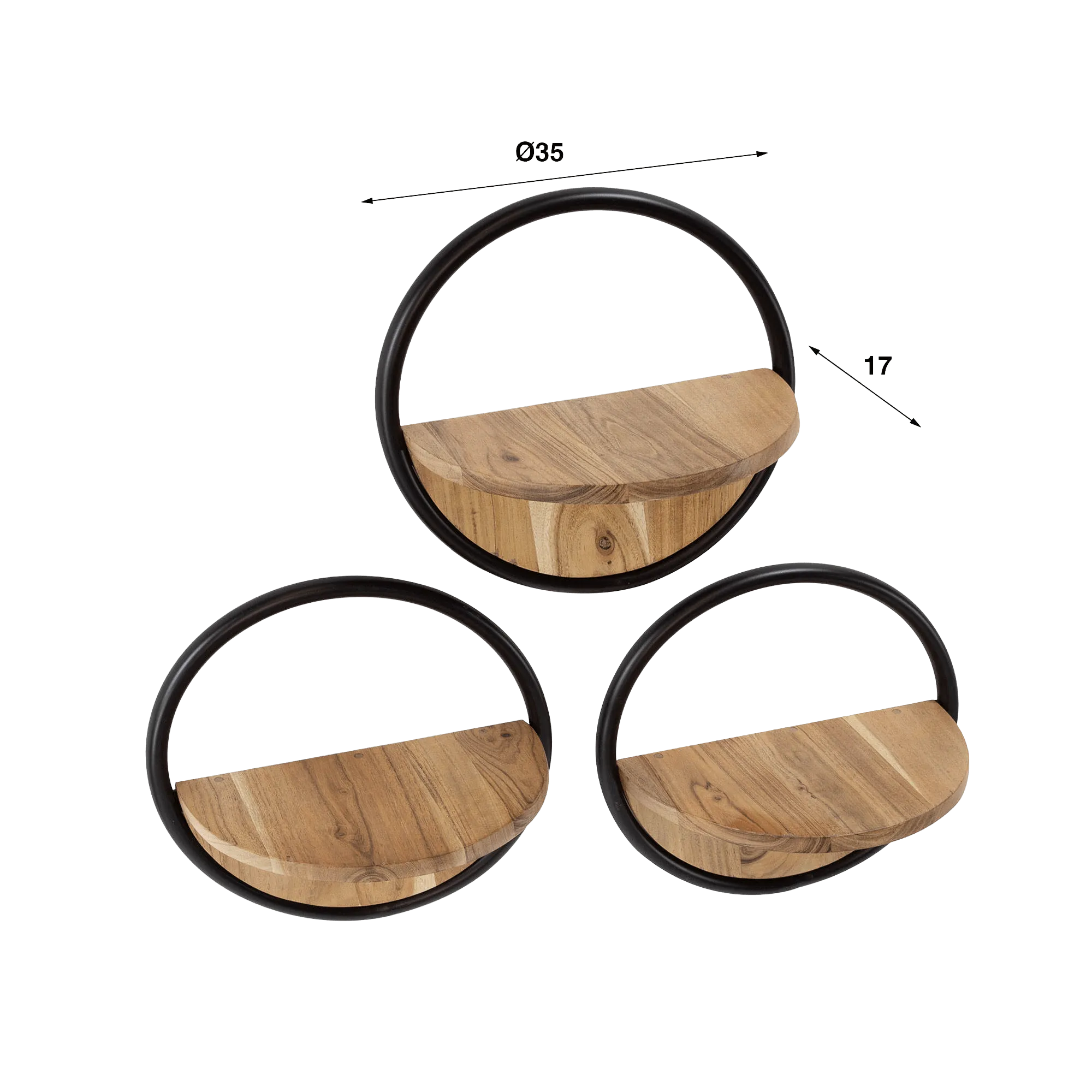 Pensée comme un élément décoratif à part entière, l'étagère murale industrielle ronde avec tablette bois en lot de 3 Urban réinterprète l’esprit industriel avec une approche plus douce et contemporaine. Nous avons imaginé ce lot de trois étagères murales rondes industrielles comme une composition capable d’habiller un espace tout en restant fonctionnelle. Leur diamètre d’environ 35 cm associé à une profondeur proche de 17 cm permet d’accueillir facilement livres, objets décoratifs ou petites plantes, tout en conservant une silhouette visuelle légère sur le mur.