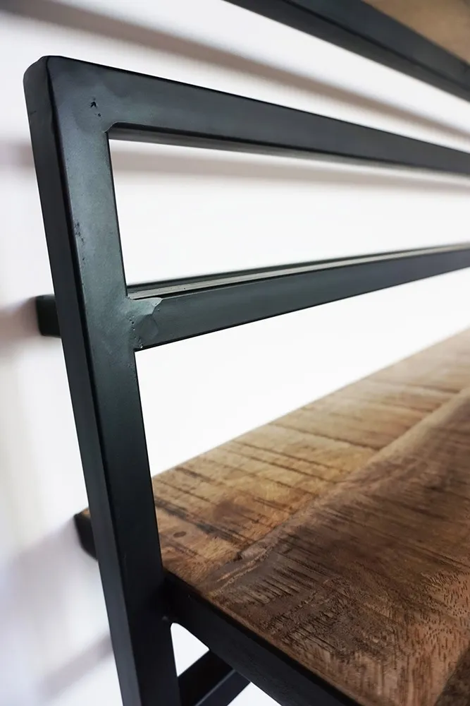 Les tablettes en bois massif sont montées sur un magnifique cadre métallique. L’aspect linéaire de cet assemblage renforce le look industriel et apporte de la légèreté à l’ensemble. Le cadre est réalisé en métal noir et est pourvu d’attaches murales pour pouvoir suspendre aisément les étagères. Les vis et chevilles de fixations ne sont pas fournies, soyez prévoyant afin de pouvoir profiter le plus rapidement de votre nouvelle décoration en fonction de votre mur.