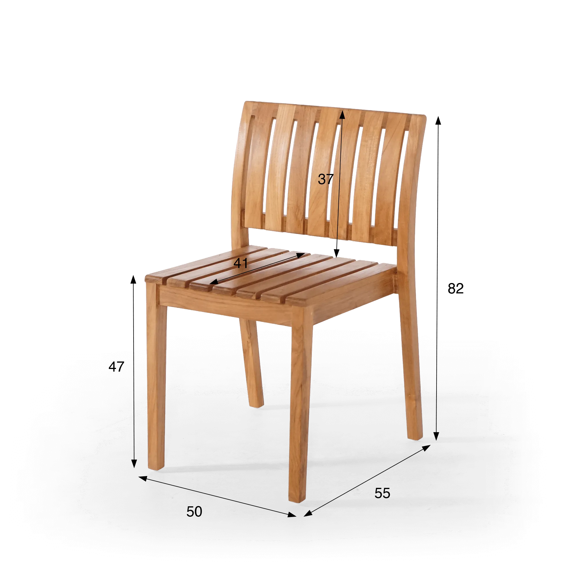 Autour de la table de jardin Reito, les chaises en bois de teck Juno prolongent cette recherche d’authenticité avec une silhouette sobre et accueillante. Leur structure en teck massif assure stabilité et longévité, tandis que l’assise aux lignes aérées renforce la sensation de légèreté visuelle. Nous avons souhaité créer une assise confortable, propice aux repas prolongés comme aux moments de détente en extérieur, en privilégiant des proportions équilibrées et un toucher naturel agréable au quotidien.