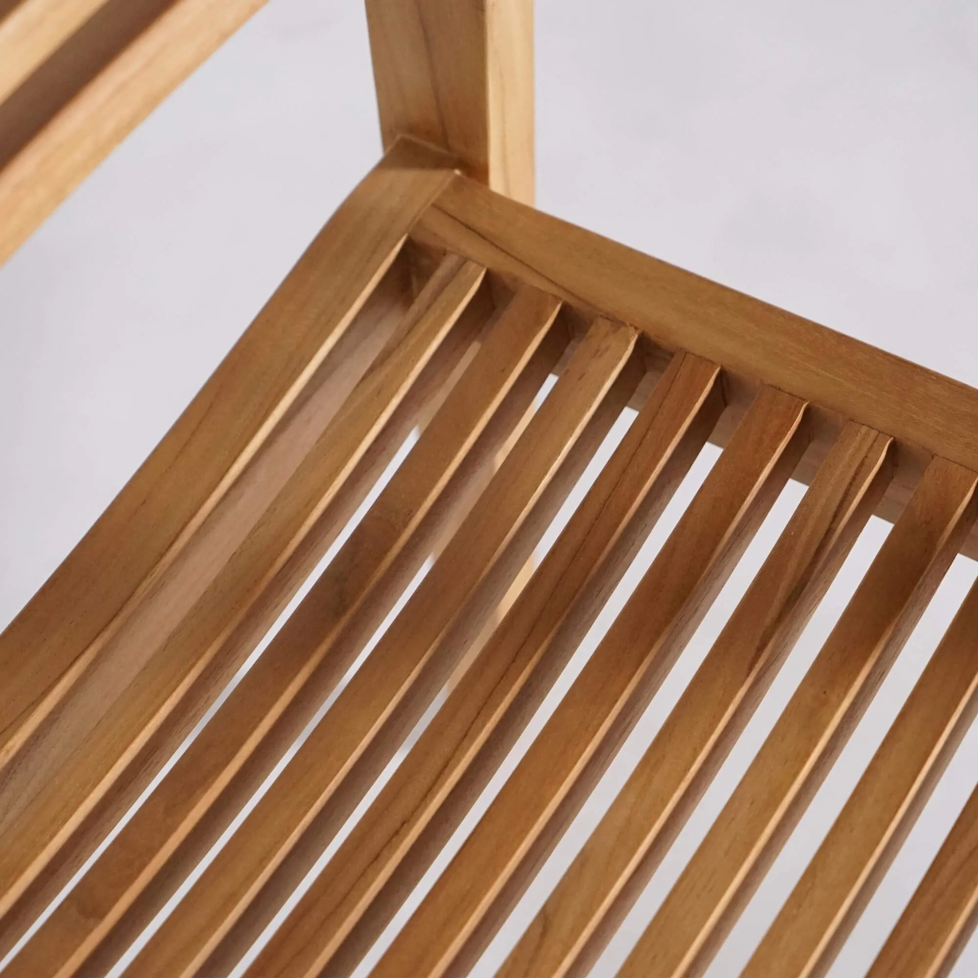 Les chaises de jardin Naito prolongent cette recherche d’harmonie grâce à un dessin sobre qui met en valeur la noblesse du bois. Leur dossier composé de lattes horizontales crée une structure visuelle légère tout en assurant un maintien confortable. L’assise légèrement galbée accompagne naturellement la posture, permettant de profiter de repas prolongés avec aisance. Avec des proportions d’environ 60 cm de largeur, 55 cm de profondeur et 78 cm de hauteur, elles s’intègrent facilement autour de la table tout en conservant une impression de légèreté.