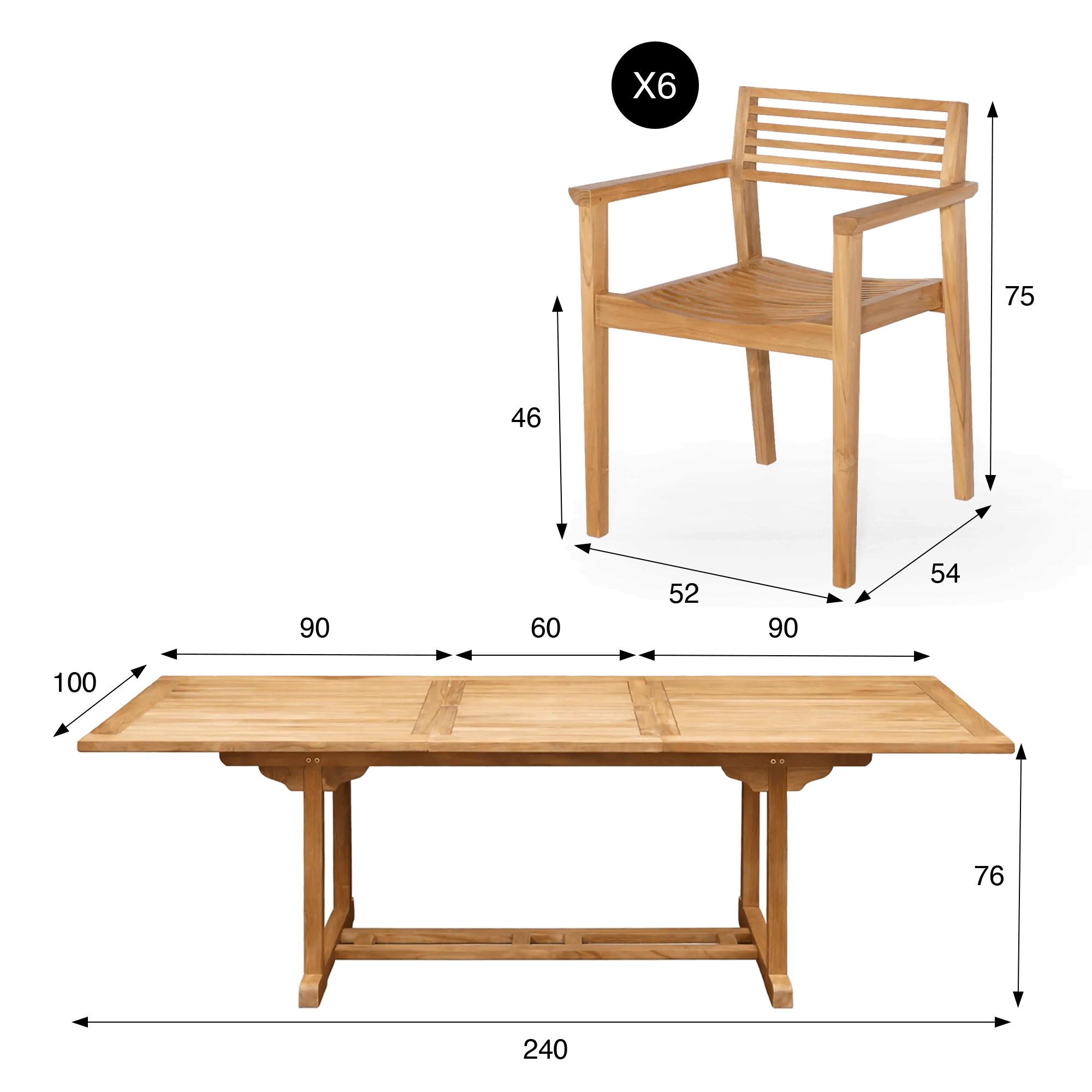 Ensemble table et chaises de jardin en bois de teck 6 personnes