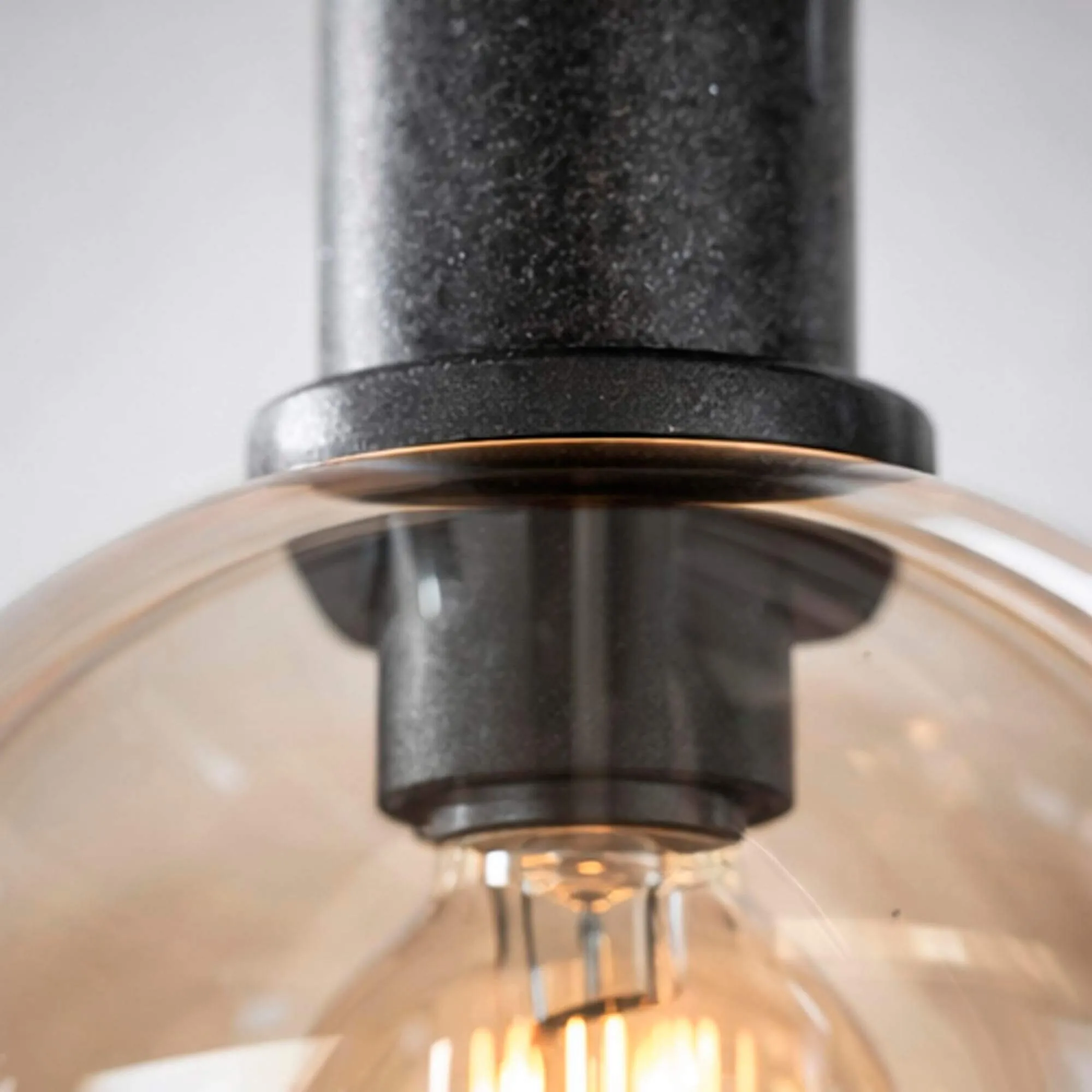 Sur ce luminaire en suspension avec abat-jour en verre et métal noir, nous avons particulièrement soigné la finition légèrement texturée du métal, qui capte discrètement la lumière et renforce la présence du luminaire sans excès. L’assemblage a été pensé pour rester simple, afin que la mise en place accompagne naturellement votre projet d’aménagement.