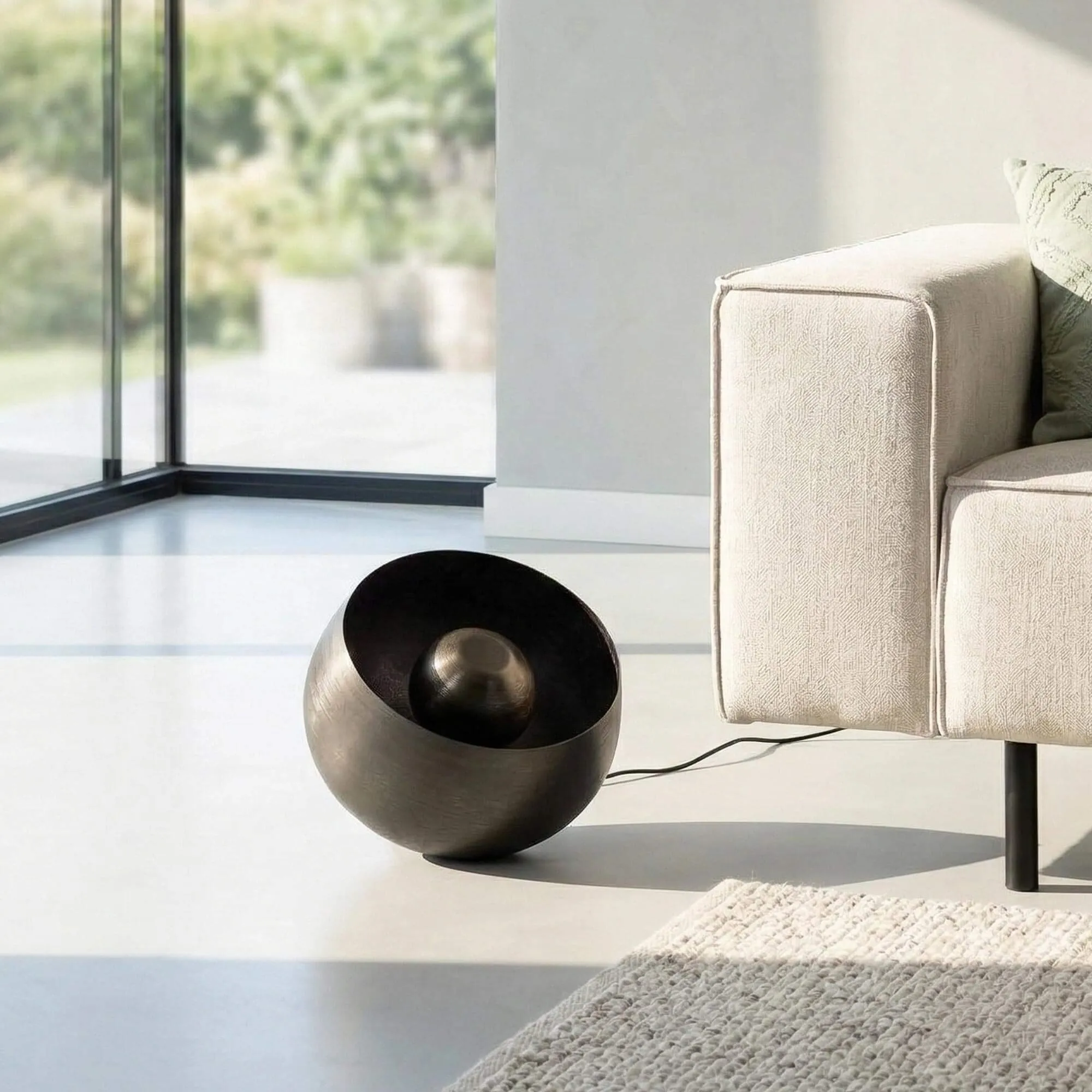 Avec ses proportions équilibrées – environ 28 cm de diamètre pour 26 cm de diamètre – cette lampe de salon à poser en métal noir et or trouve naturellement sa place au sol, sur une console ou à proximité d’un fauteuil. Son format compact permet d’apporter une présence lumineuse sans encombrer l’espace, tout en valorisant l’environnement dans lequel elle s’inscrit. Nous avons porté une attention particulière à la finition du métal, dont l’aspect légèrement brossé confère profondeur et caractère à l’ensemble, renforçant l’identité design de la pièce.