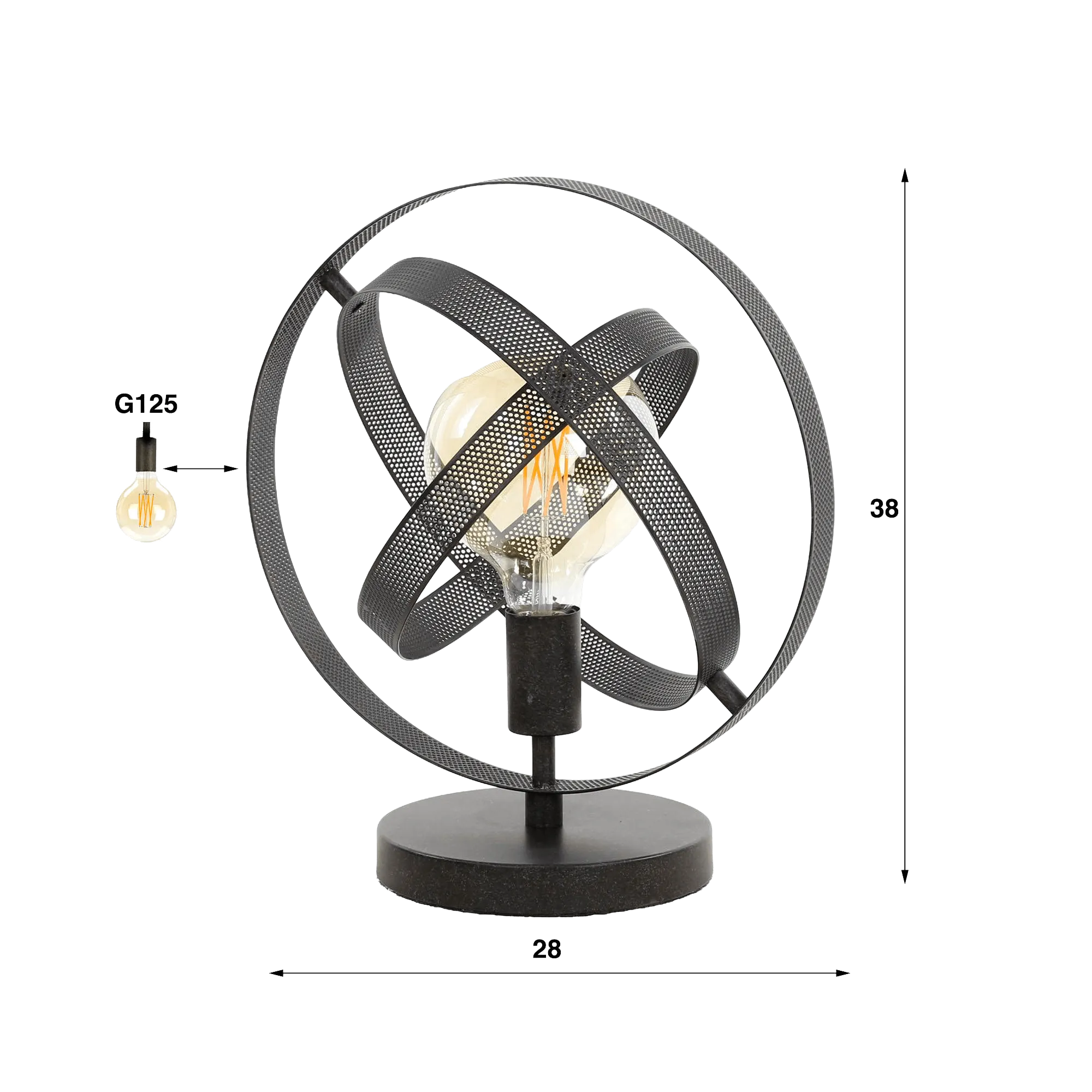 Réalisée en métal noir, la lampe de bureau industrielle en métal Maddox dévoile un travail minutieux sur la matière. Les anneaux perforés filtrent délicatement l’éclairage, laissant apparaître un jeu d’ombres graphiques qui évolue selon l’angle d’observation. Nous avons particulièrement veillé à l’équilibre des proportions : avec environ 28 cm de largeur et 38 cm de hauteur, la lampe s’intègre facilement sur un bureau, une console ou une table d’appoint, tout en conservant une présence affirmée.